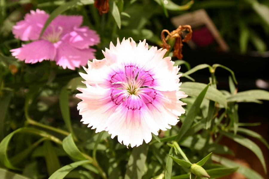 Гвоздика Diana Lavender Picotee - это изысканное растение сиренево-белого цвета, которое поражает своей красотой и изяществом. Ее стебель прочный и устойчивый, достигает высоты 15-20 см, что делает ее идеальным выбором для групповых посадок. Листья гвоздики имеют форму иглы, что добавляет растению особый шарм и изысканность.