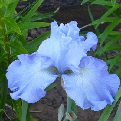 Рассада ириса германского Banbury Ruffles (Банбури Раффлс) представляет собой карликовый сорт ирисов, цветущий раньше всех своих родственников. Цветок вырастает фиолетового цвета, гофрированный. Длина цветоноса достигает 3 см. Листья у этого вида ириса сизоватые, широкие, прикорневые. В высоту растение достигает 35 см. Посадка семян может осуществляться осенью, весной или летом (после того как ирис отцвел).