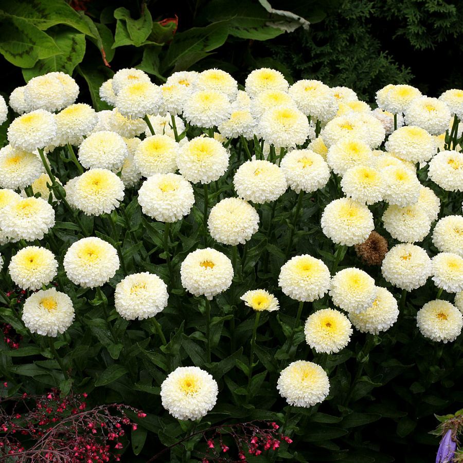 Саженцы Нивяника Альпийского Луна (Luna Leacanthemum alpium) помогут вырастить красивые пышные кусты с роскошными махровыми бутонами бело-желтого цвета. Куст высокий, около 50-60 сантиметров, с прямым и прочным стеблем. Бутоны крупные, плотные, в диаметре достигают 8-10 сантиметров. Высадку саженцев осуществляют на хорошо удобренные, дренированные и освещенные участки. Куст плохо переносит близкое соседство с другими культурами, его не рекомендуется использовать в густых групповых посадках. Нивяник прекрасно подходит для оформления цветников. Также его используют на срез, цветы длительное время стоят в вазе.