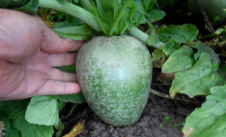 Семена редьки «Маргеланская» высевают в первой половине июля. Посев производят во влажную землю либо во время дождя. Рассада редьки «Маргеланская» быстро прорастает и не требует ухода. Урожай можно собирать чрез два месяца после появления всходов. Масса корнеплодов достигает 400 г. Они имеют овальную форму и окрашены в зеленоватый оттенок. Мякоть обладает нежно-острым вкусом, сочная. Окрашена она в светло-зеленый цвет. Сорт семян редьки «Маргеланская» хорошо хранятся, при этом не теряют свои вкусовые и товарные качества. Также корнеплоды обладают всеми лечебными свойствами зимней редьки.