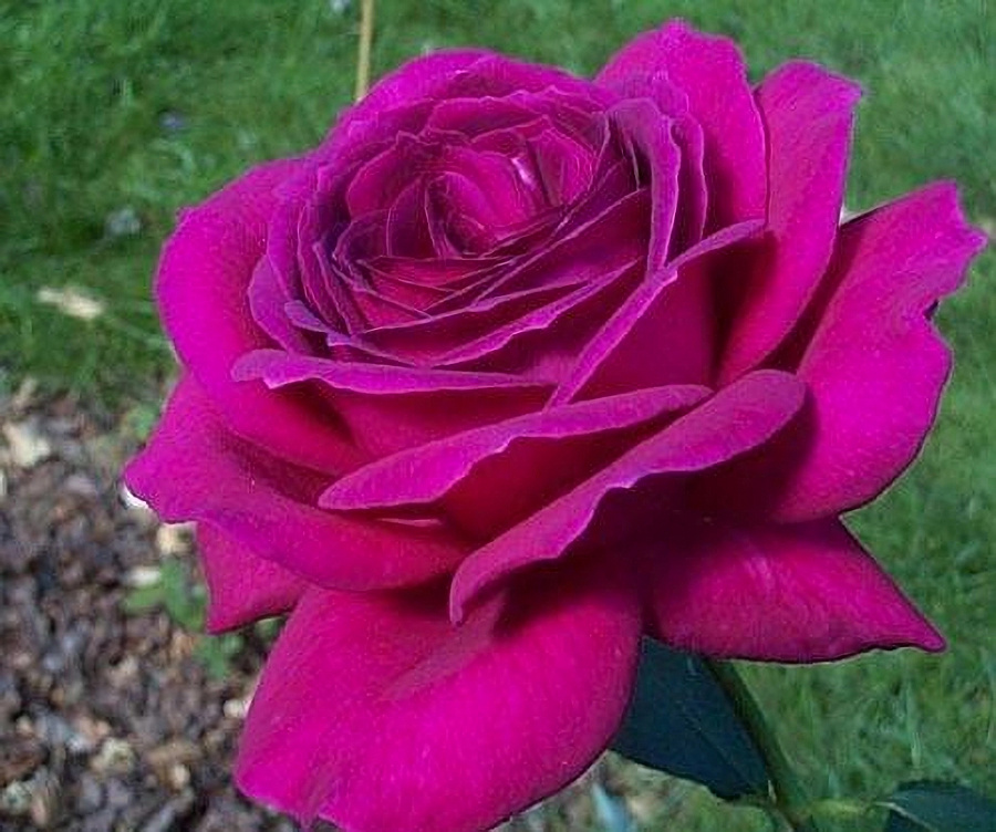 Роза сорта Big Purple (Биг Перпл) имеет очень крупные и красивые по форме цветы. Бутоны медленно распускаются, поэтому появляются постепенно, по одному на длинных побегах. Они великолепно украсят оранжереи, их темный насыщенный оттенок очень ценится. Но цвет может поменяться в соответствии с временем года и погодой – становится более малиновым, а не пурпурным. Цветы плохо переносят дожди, поэтому растение лучше развивается в сухом климате. Листья темно зеленые, устойчивы к заболеваниям. Цветы очень махровые и имеют восхитительный запах. Но цветение не обильное, а при похолодании оттенок становится пурпурным. В обычных условиях оттенок бутонов глубокий красный с преобладанием все того же пурпурного. Только что распустившиеся бутоны очень красивые, но с течением времени их окрас тускнеет. Для сохранения привлекательности кустарника следует регулярно срезать старые цветы на нем.